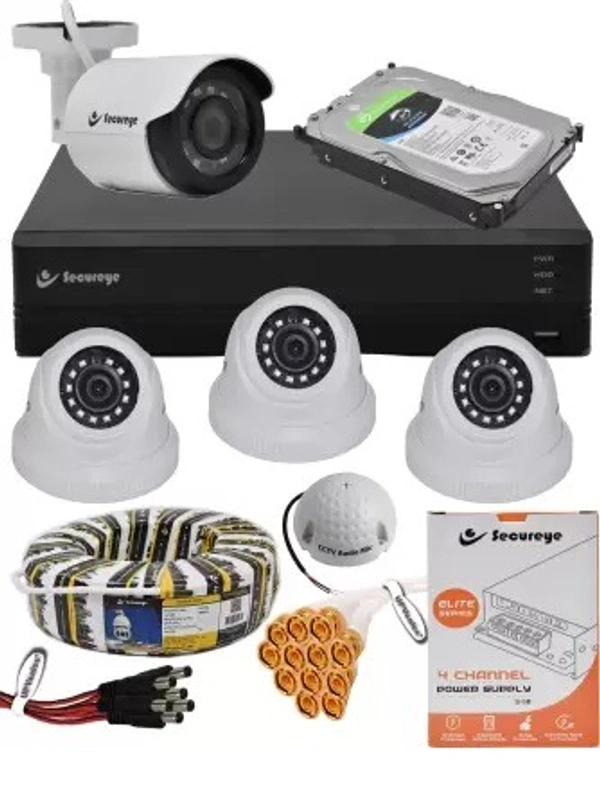 SECUREYE 2 Megapixel/Full HD/1080P 4 Channel CCTV Full Combo Set with (2MP Full HD H.264+ Supported 4Ch DVR, 4 Pcs Dome 2MP Camera, 1 Pcs 1TB Hard Drive, 1 Pcs 12V Power Supply, Copper Cable 90 Meter, Audio Mic and Heavy Connectors Set) Security Camera (1 TB, 4 Channel)